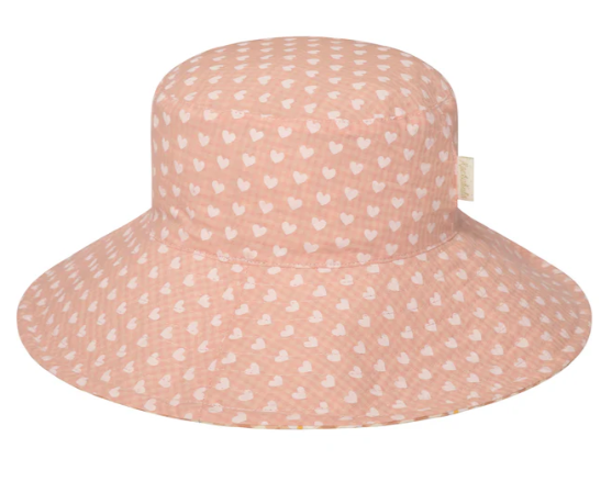 Riparatevi dal caldo sole estivo con il nostro divertente cappello da sole a quadretti con margherite! Completamente reversibile, con la nostra dolce stampa a quadretti con margherite su un lato e il tessuto con stampa a cuori rosa sull’altro. Con una tesa larga per maggiore protezione, un cappello davvero pratico per le vostre avventure in giardino, al parco o in vacanza!