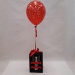 Set regalo con scatola in polistirolo dipinta a mano, bottiglietta di Santero da 200ml, 2 calici personalizzabili e un palloncino in lattice gonfiato ad elio (questa composizione non è spedibile)