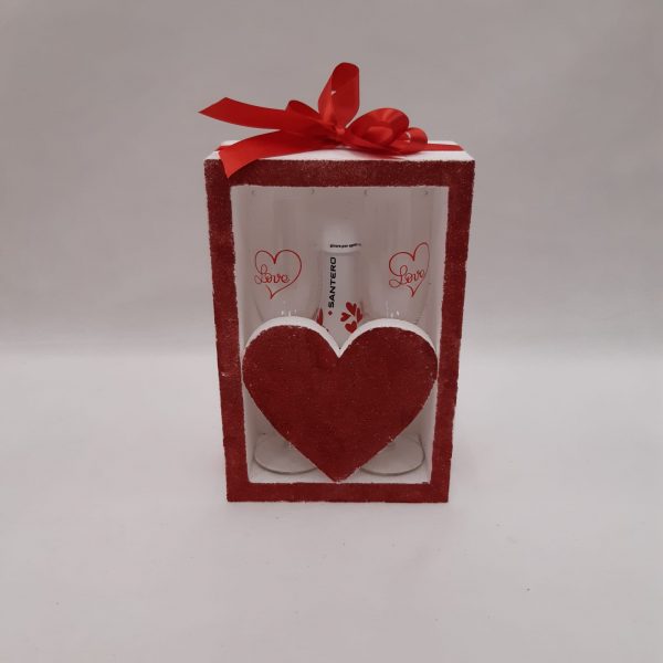CONFEZIONE REGALO CON 2 FLUTE E SANTERO + 1 PALLONCINO LATTICE