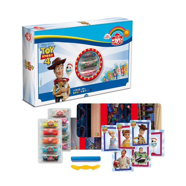 Dal magico mondo Disney Pixar arriva la confezione Didò dedicata a Toy Story 4. Modella i simpatici protagonisti del film con 10 salsicciotti di pasta per giocare didò e le 6 formine di Woody, Buzz, Bo Peep, Forky, Duke Caboom e Gabby Gabby. All’interno, 6 scenari di gioco per giocare verso l’infinito e oltre!