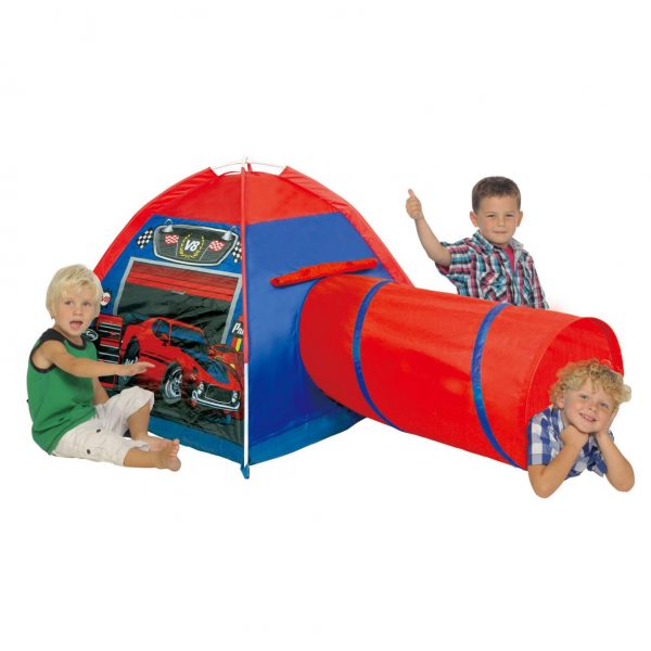 La tenda da gioco giusta per i piccoli fan delle auto. Le auto possono essere parcheggiate o persino riparate nel garage della tenda da gioco. Alla tenda si accede attraverso un tunnel e gli autoveicoli per la riparazione o il parcheggio possono essere introdotti nella tenda attraverso l’ingresso laterale. Con i pali flessibili, la tenda può essere montata e smontata rapidamente e facilmente.
