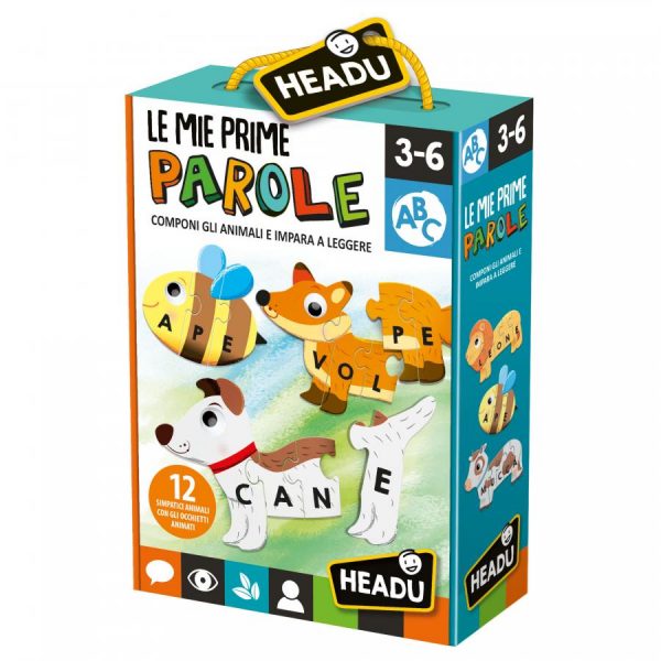 Componi i puzzle autocorrettivi degli animali e impara a leggere e scrivere le prime parole! In più, puoi rendere animate le sagome con gli occhietti adesivi.