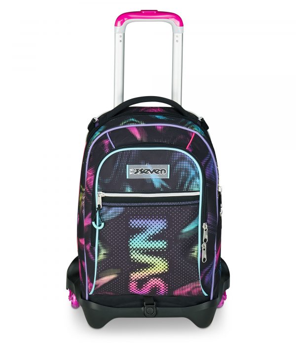 - Il Trolley Seven Jack-3WD è uno zaino con carrello sganciabile dotato di sistema a 3 ruote per lato. Lo zaino, provvisto al suo interno anche di una tasca porta borraccia, è capiente e da riempire con quello che ti serve: libri, quaderni per scuola, o il cambio per l’allenamento. Schienale e spallacci imbottiti inoltre rendono lo zaino comodo da indossare sulle spalle, mentre se lo agganci al carrello dotato di doppia barra telescopica, protezioni angolari e fondo rinforzato è maneggevole, stabile, pratico e sicuro da trascinare come trolley.