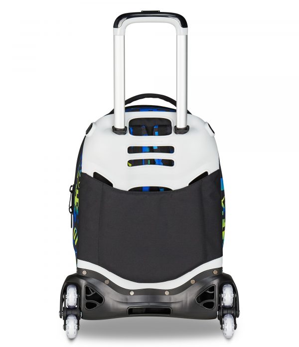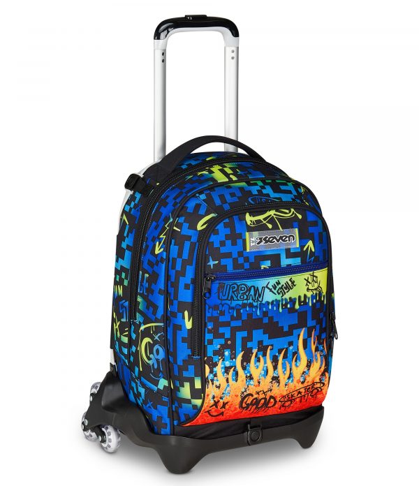 - Il Trolley Seven Jack-3WD è uno zaino con carrello sganciabile dotato di sistema a 3 ruote per lato. Lo zaino, provvisto al suo interno anche di una tasca porta borraccia, è capiente e da riempire con quello che ti serve: libri, quaderni per scuola, o il cambio per l’allenamento. Schienale e spallacci imbottiti inoltre rendono lo zaino comodo da indossare sulle spalle, mentre se lo agganci al carrello dotato di doppia barra telescopica, protezioni angolari e fondo rinforzato è maneggevole, stabile, pratico e sicuro da trascinare come trolley.