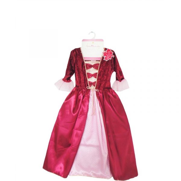 Abito da principessa reale, un vero abito da principessa da favola. Questo vestito è impreziosito da rifiniture in organza luccicante su una gonna a cerchio in raso. Le maniche e il vestito sono realizzati in morbido velluto rosa elasticizzato schiacciato. Abbina questo abito a uno dei nostri mantelli da principessa. Realizzati con materiali di qualità e cura nei dettagli, facili da lavare, i costumi in maschera Great Pretenders durano a lungo e possono essere passati a fratellini e sorelline più piccoli.